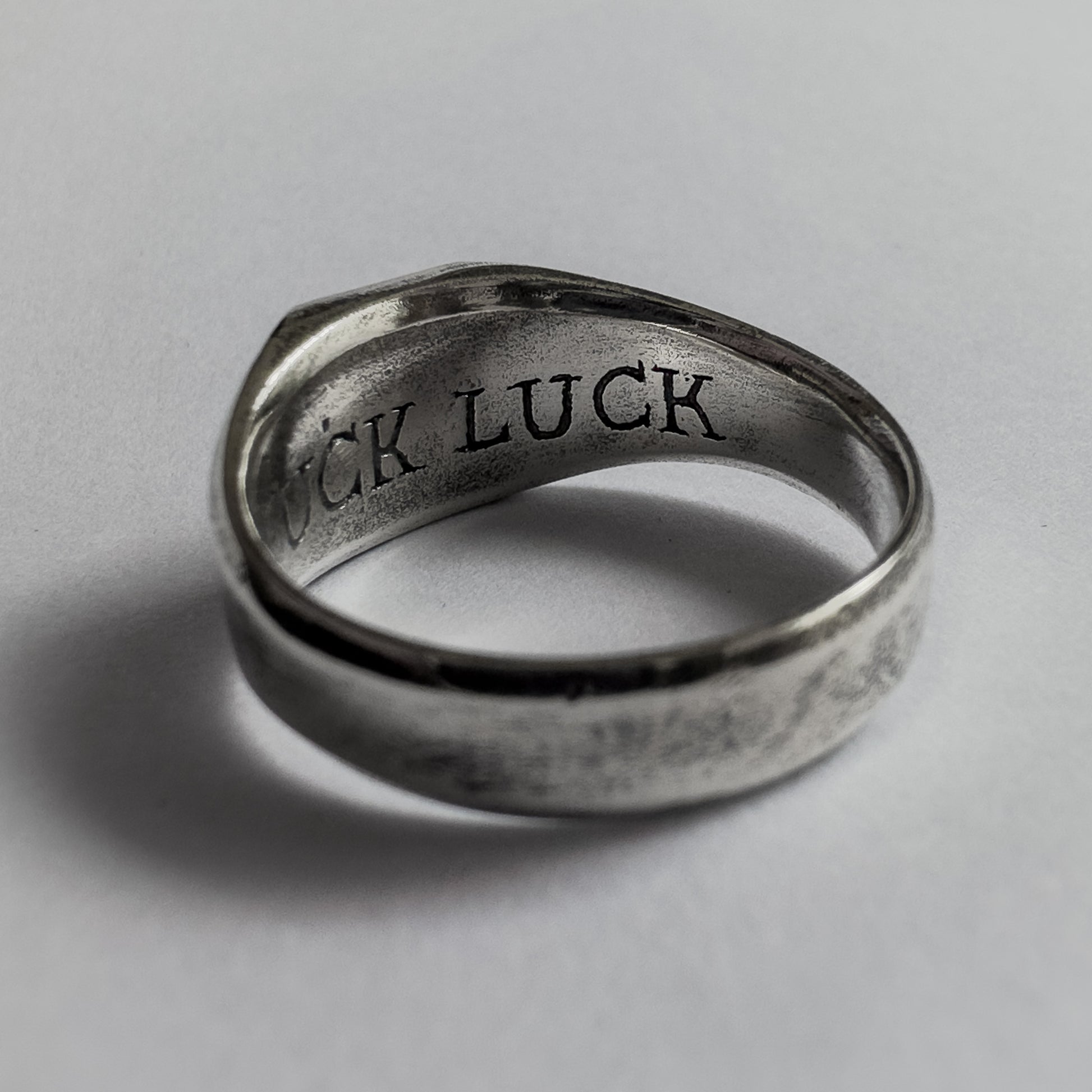 I bought this ring as a 1 year anniversary gift for my partner. The ring is beautiful and well made and the design is awesome. The carving is really nicely balanced, not too bold and not too delicate.