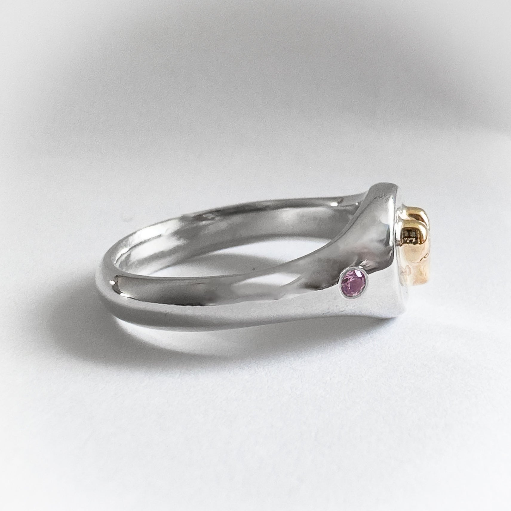 Gem - Your choice of 2mm lab grown gemstone flush set into shoulder of ring.